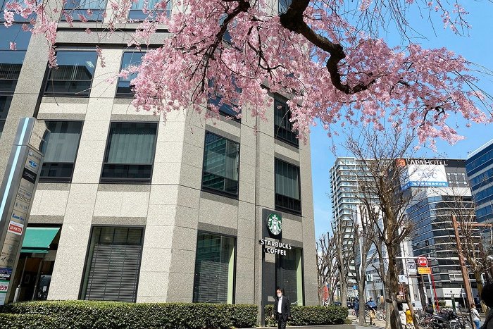 2.『1番出口』から出ると、スターバックスが見えます。スターバックス沿いに直進します。