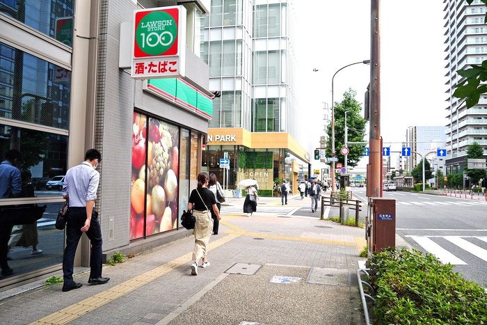 3.ローソンストア100の看板が見えてきます。